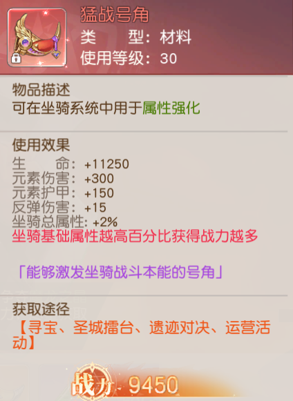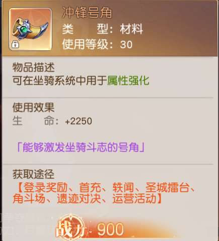 这是高阶号角,可全面提升坐骑综合属性,是高级玩家必备材料。