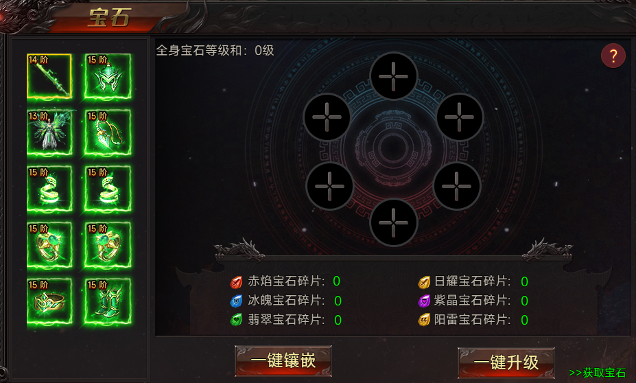 2、宝石可通过宝石碎片升级,分解对应宝石可获得宝石碎片,升级消耗对应的宝石碎片。