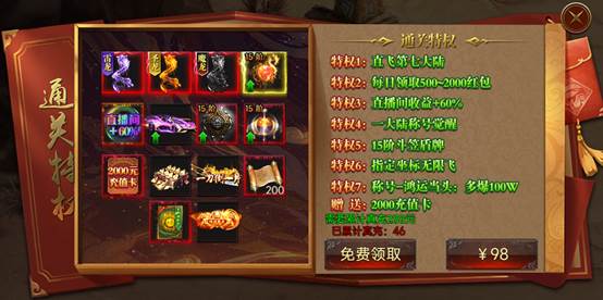 通关特权内容包括: